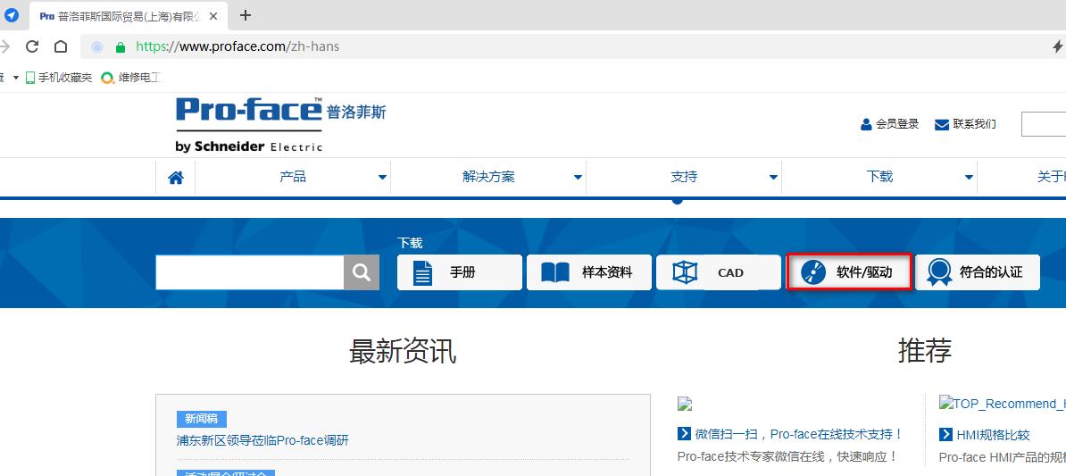 1.打開瀏覽器輸入網址https://www.proface.com/zh-hans